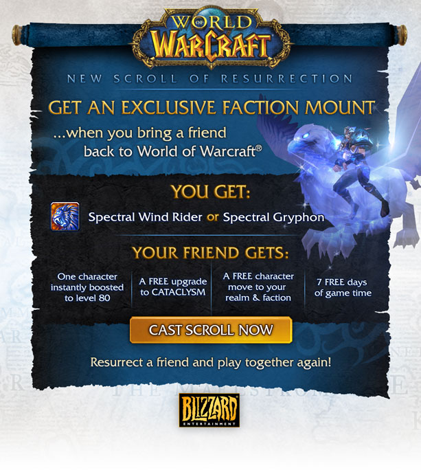 WoW: Scroll of Resurrection Ends Soon! | Games News Blog from lh5.googleusercontent.com Hello, i need a little help, where can get scrolls of resurrection for pets? A scroll of enchantment that resuscitates a dead person. , scroll of resurrection (хроники c4). Blessed scroll of resurrection high five. Yea, if you go to your friends list ingame there is a scroll you can click. So, since the whole scroll of resurrection thins started with the free level 80s to players with inactive accounts, has this negatively affected raids? Of scroll resurrection resurrection world warcraft. Scroll of resurrection removed from default level 6 charged drop list.